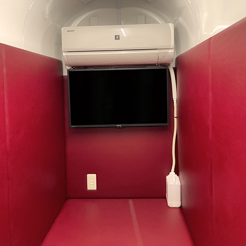 この酸素ルームの最大の特徴は、大人1人がゆっくりと横になりながら酸素を吸入できることです。疲れた体を休めながら、心地よい酸素を浴びることで、疲れやストレスを解消することができます。